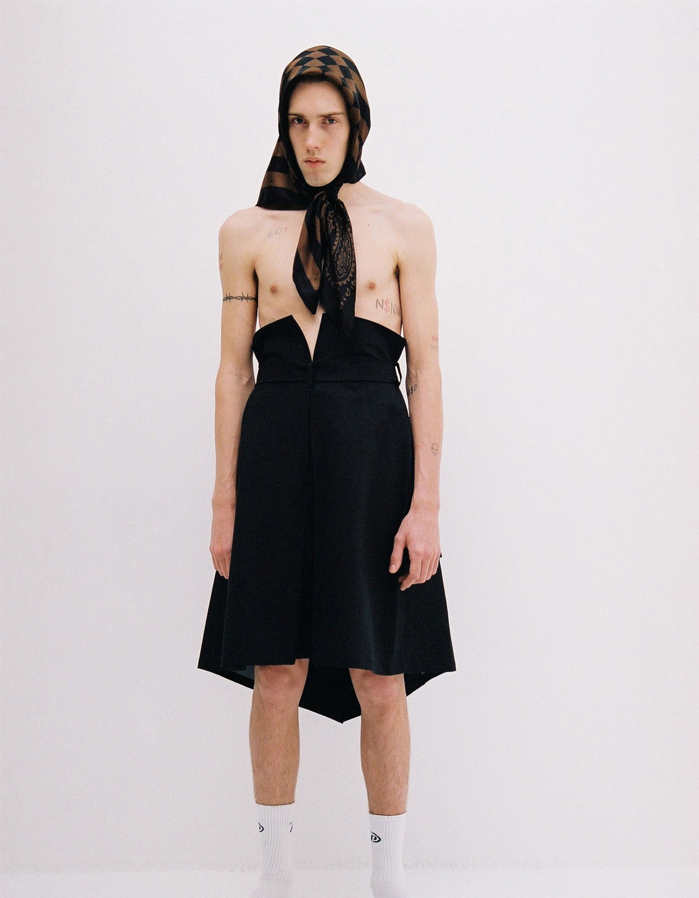 BANDANA SILK SCARF 90cm × 90cm / BLACK × BROWN