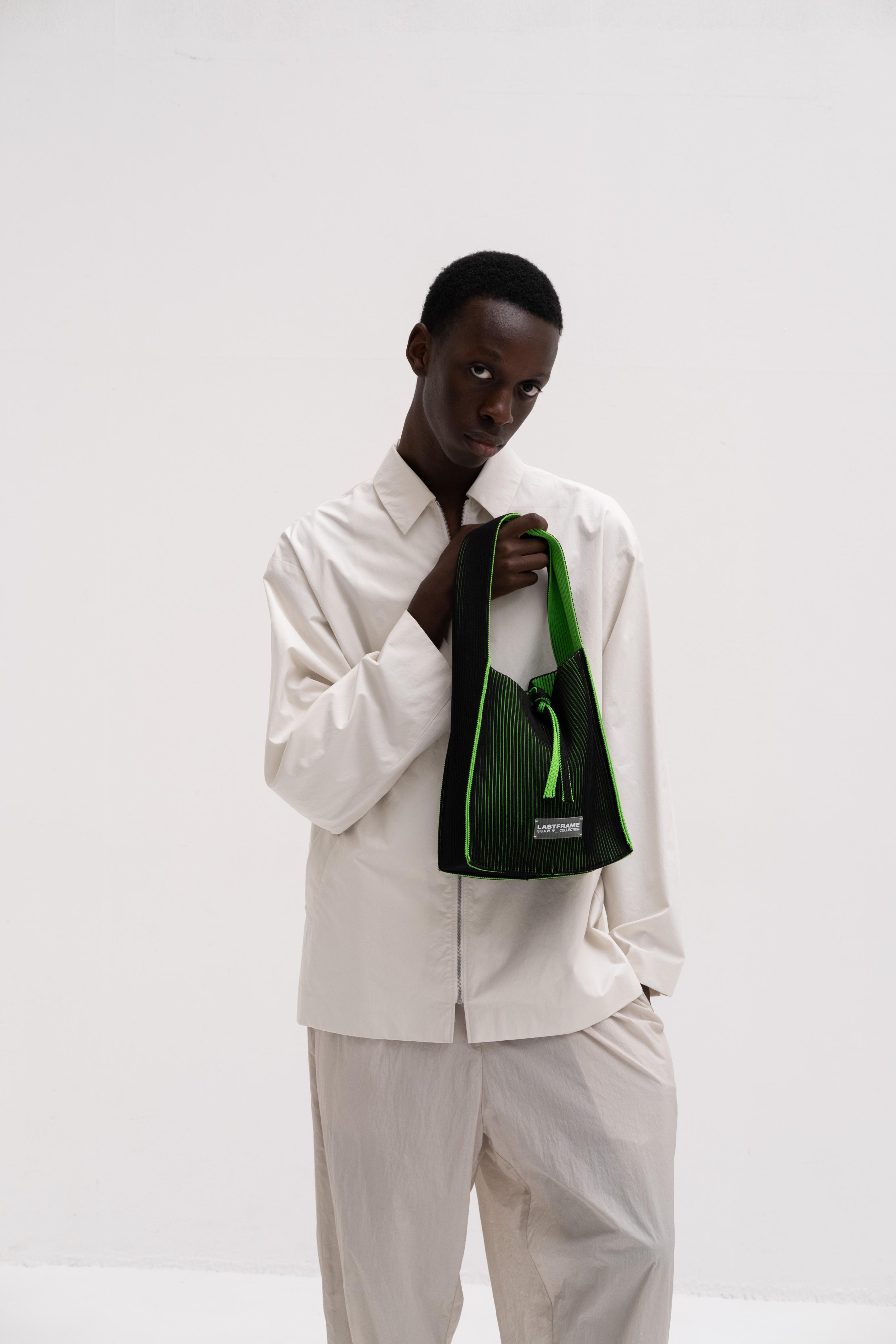 KASANE REVERSIBLE TASUKI TOTE SMALL / BLACK × NEON GREEN